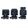 La silla de coche i-Size plegable apta desde 76 cm hasta 150 cm (mínimo 15 meses a aprox. 12 años), con fijaciones ISOFIX y modo elevador con respaldo alto.